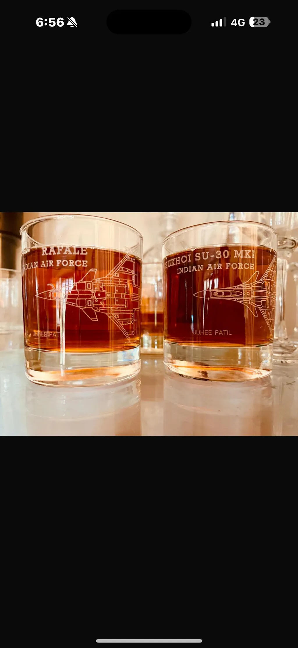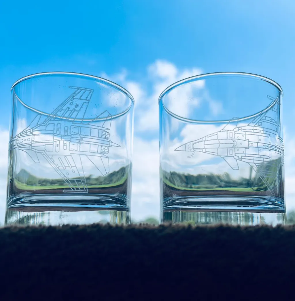 The Indian Air Force 2 Whiskey Glass Set features precision and intricate engraving. Each tumbler offers exceptional clarity and brilliance, enhancing the aroma and taste of your favorite whiskey. Designed for connoisseurs who appreciate both artistry and uniqueness, this set combines expert craftsmanship with elegant durability for a refined drinking experience.